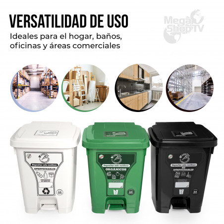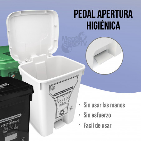 Práctico sistema de pedal: Cada cesto cuenta con un pedal que permite abrir la tapa sin necesidad de utilizar las manos, lo que garantiza una mayor higiene y evita la propagación de gérmenes.