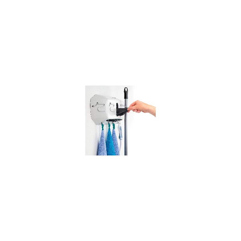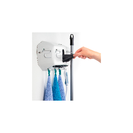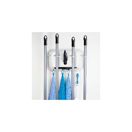 Sus ganchos son articulados con una cobertura de goma antideslizante que evitará la caída de tus utensilios de limpieza.