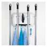 Tiene espacio para 4 escobas o traperos y hasta 4 trapos.
