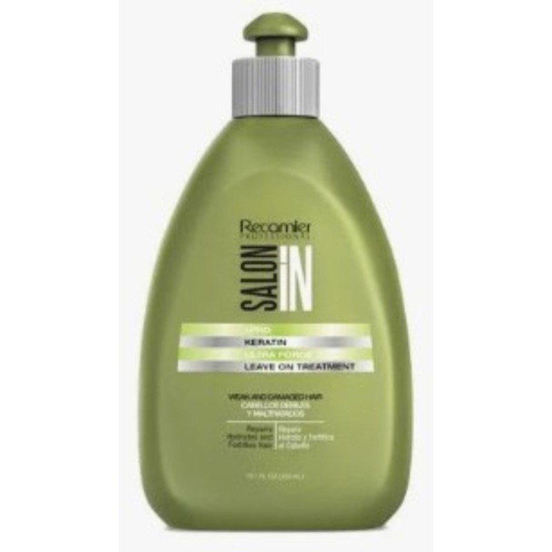ElRECAMIER SALON EN PRO KERATIN ULTRA FORCE TRATAMIENTO SIN ACONDICIONAMIENTO es un tratamiento sin enjuague formulado específicamente para cabello débil y dañado. Su fórmula, que incluye keratina natural y aceite de argán, actúa fortaleciendo e hidratando la fibra capilar, proporcionándole brillo y un aspecto saludable.