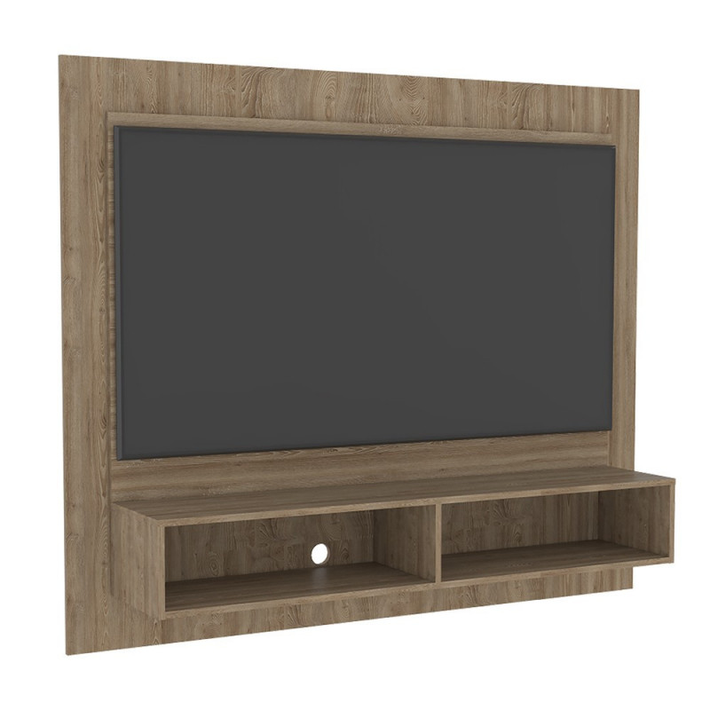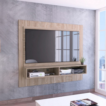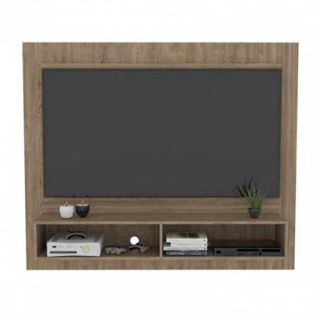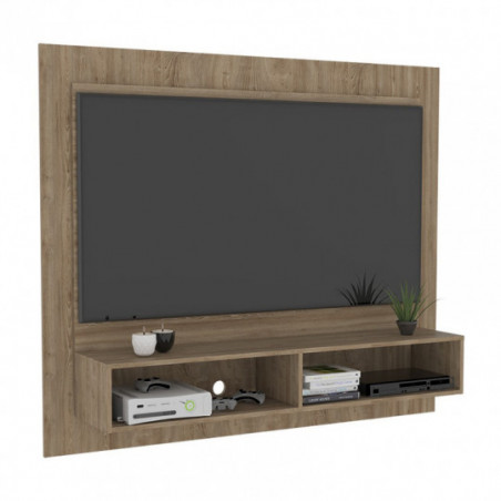 Panel de TV, con espacio para televisor de hasta 55 Máximo, múltiples entrepaños y superficies para ubicar objetos. Elaborado en Madera aglomerada MDP, recubierta con láminas melamínicas de excelente calidad, en color Miel