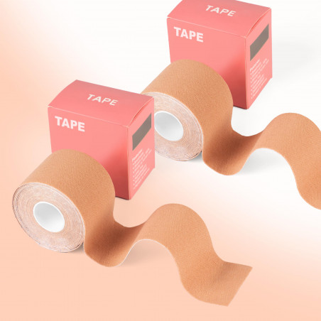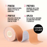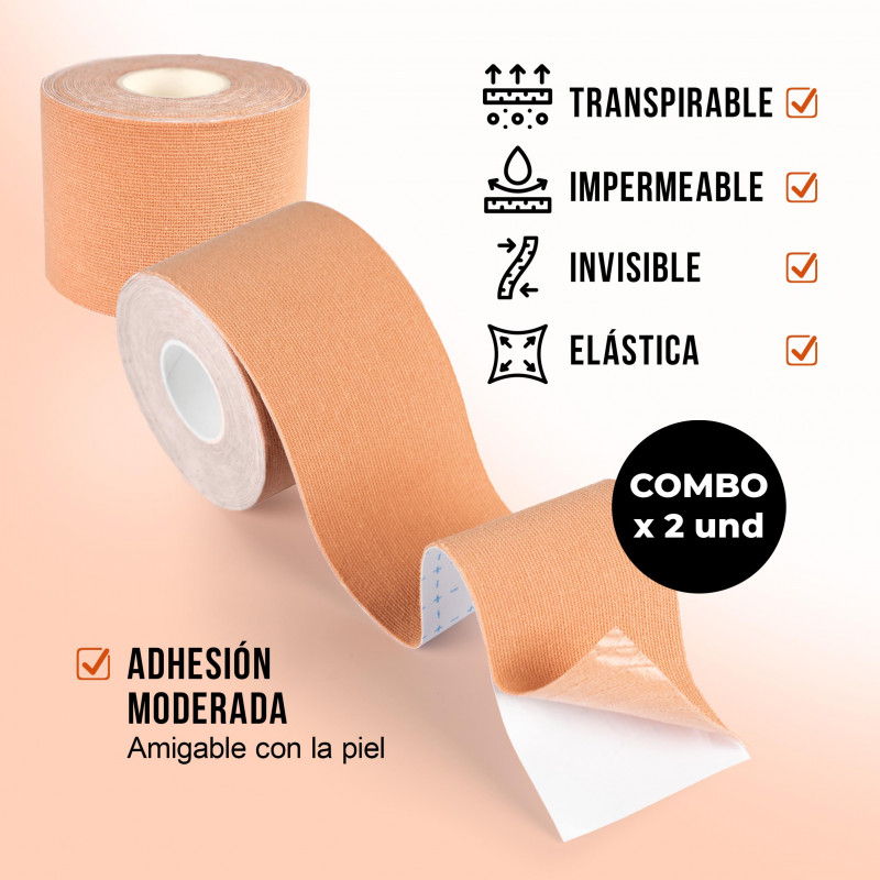 Su material provee elasticidad máxima y soporta los senos desde la copa A hasta D ya que tiene fuerte adherencia a la piel. No genera dolor ni molestia al quitarla. Su material se compone de 95% algodón y 5% spandex, es hipoalergénico, resistente al agua, libre de látex y respirable para brindarte la mejor experiencia mientras la usas. Su longitud es de 5 mts y el ancho de 5 cms. La cinta de empuje transpirable es cortable y puede ser reutilizada hasta 7 veces gracias a que la parte adhesiva es pegajosa e impermeable.