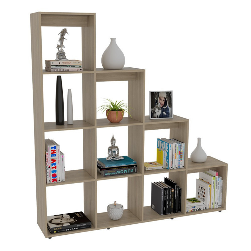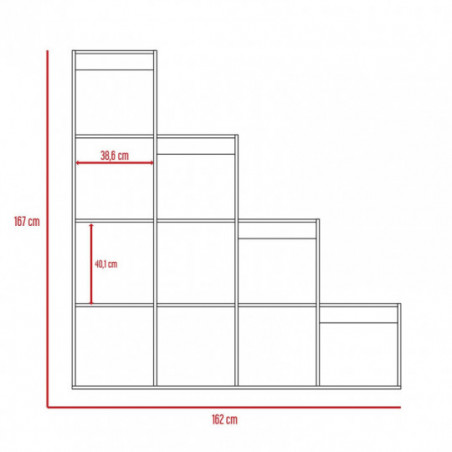 Biblioteca y divisor de espacios que cuenta con excelente capacidad de almacenamiento, espacios para ubicar libros y/o objetos decorativos, permite ubicarse como divisor de espacios, fácil instalación, Diseño contemporáneo.