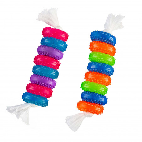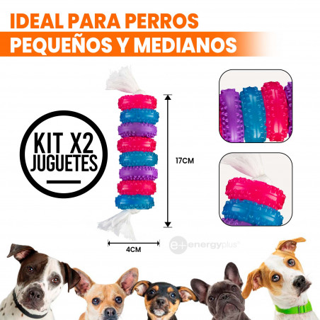 Incluye: 2 Juguetes para perros con aros de colores.
