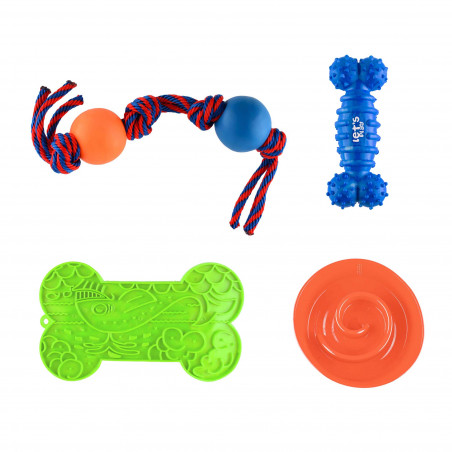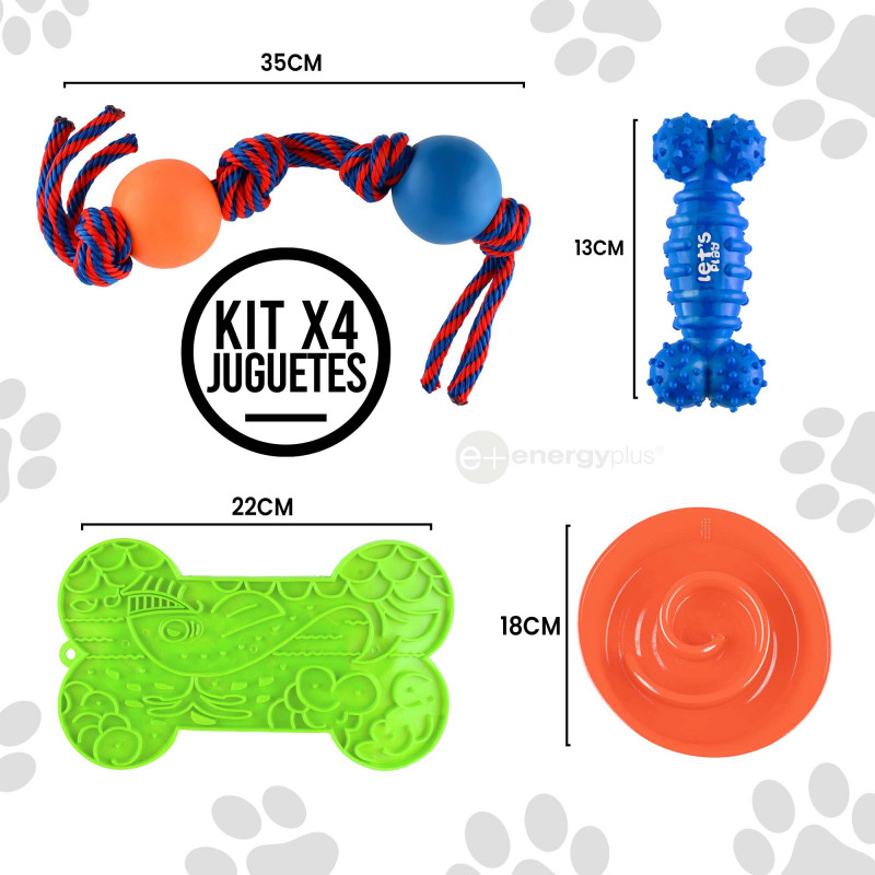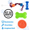 ¡Hola amantes de los perros! Prepárense para un paquete que cambiará la vida de sus peludos amigos: nuestro "Kit de 4 Juguetes para Perros Pequeños". Cada juguete es elaborado con Goma Termoplástica atóxica, grado alimentos, ofreciendo diversión segura.