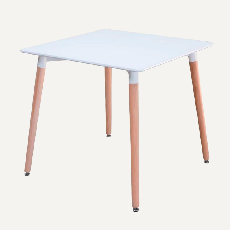 Mesa cuadrada blanca Mesa perfecta para el comedor de diseño moderno. está fabricada en MDF de 18 mm y en la parte superior cuenta con una melanina que brinda mayor resistencia y durabilidad. Patas torneadas en madera tipo haya. Medidas: 74alto x 80ancho x 80 fondo.  Capacidad/ resistencia/ carga máxima: 60 kg Nota: solo incluye la mesa, no incluye elementos decorativos.