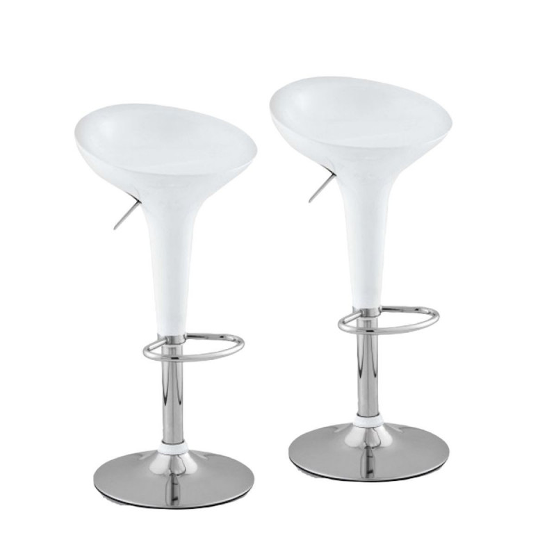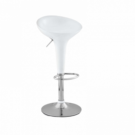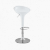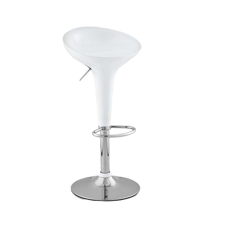 con Asiento en fibra acrílica de alta resistencia. Base circular cromada con goma antideslizante con diámetro de 39 cm. Banco giratorio regulable en altura mediante una palanca de metal localizada en el asiento. Dispone de un reposa pies cromado integrado. El banco tiene una rotación de 360°. Usado en líneas de cocina, hostelería, bares o como elemento decorativo.