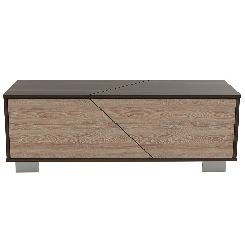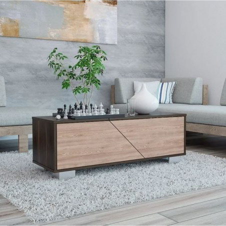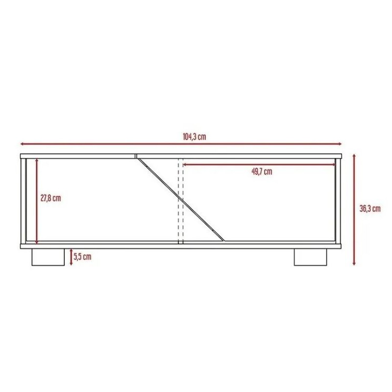 Mesa de Centro, con espacios ocultos para ubicar libros y objetos, 1 puerta y patas de acero.