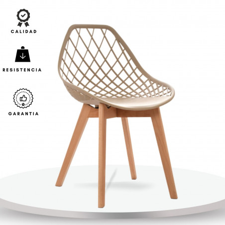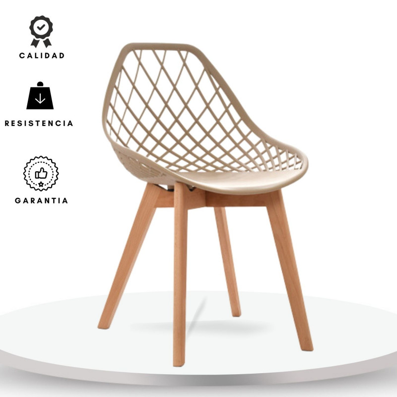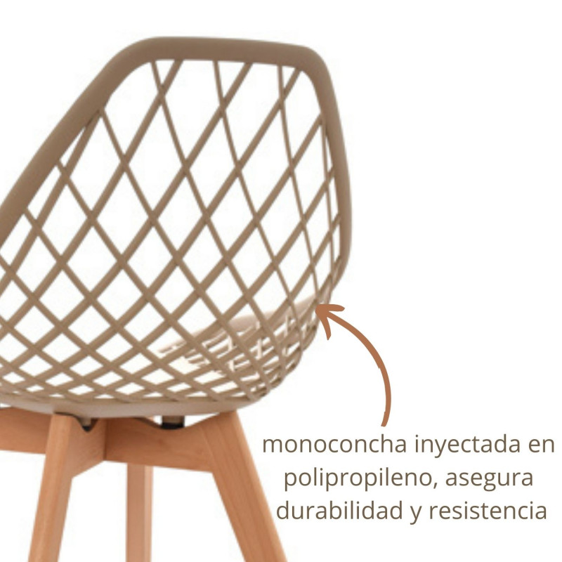 Esta silla con monoconcha inyectada en polipropileno asegura durabilidad y resistencia, mientras que la estructura de 4 patas en madera de haya proporciona estabilidad y un aspecto naturalmente atractivo.