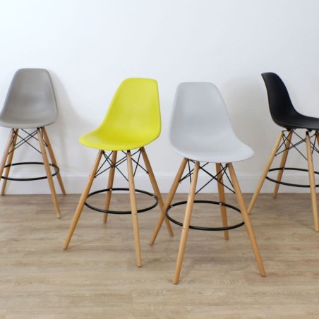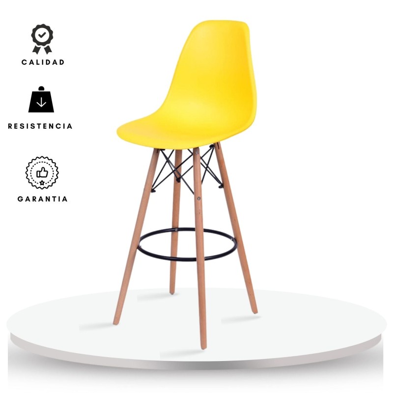 La Silla de Barra o Tocador fija combina un diseño moderno e innovador con materiales de alta calidad, ideal para barras o espacios tipo bar. Está elaborada en polipropileno de alto impacto, con patas de madera y barras metálicas que funcionan como apoya pies. Su estructura ágil y cómoda incluye un espaldar que aporta mayor confort, y se destaca por sus colores de vanguardia y estilo contemporáneo, perfecto para ambientes modernos.