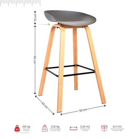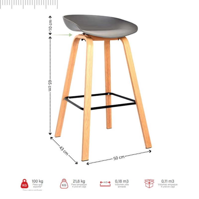 Dale un estilo moderno y diferente a tu hogar con la silla tipo bar Milyi. Su asiento, inyectado en polipropileno, está firmemente sujeto a la estructura mediante tornillos de sujeción, garantizando durabilidad y seguridad. La estructura está fabricada en tubería cold rolled con acabado tipo madera, que aporta un toque cálido y elegante. Además, cuenta con apoya pies en tubería negra pintada y tapones antideslizantes para mayor estabilidad y confort. Ideal para barras de cocina o espacios sociales con estilo contemporáneo.