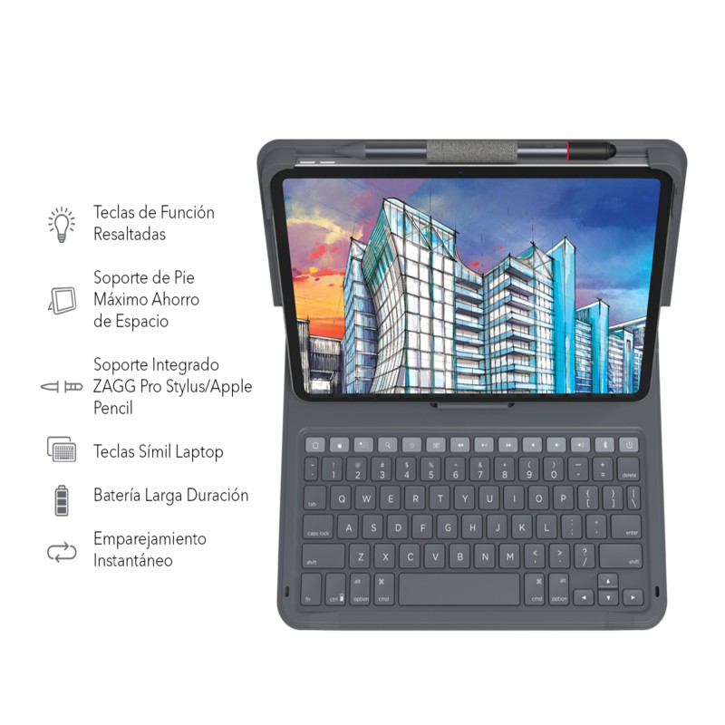 Tu iPad te permite trabajar donde quiera que estés, pero para ser realmente productivo, precisas un teclado con todas las funciones necesarias. El Messenger Folio 2 tiene teclas símil laptop y una funda resistente. Cuenta con características de última tecnología como teclas de función, espacio entre teclas y un diseño profesional de alta gama que hacen que la funda con teclado sea un combo premium.