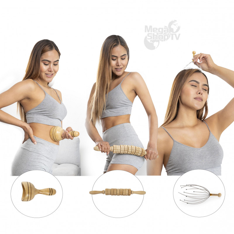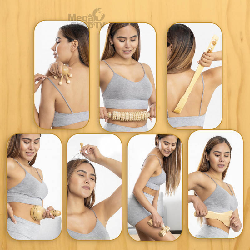 Con este kit de maderoterapia vas a estimula, activar y tonificar tu cuerpo, con diferentes utensilios de madera que se adaptan a las diferentes zonas, con el objetivo de reducir los niveles de estrés, moldear y aliviar los dolores musculares y articulares.
