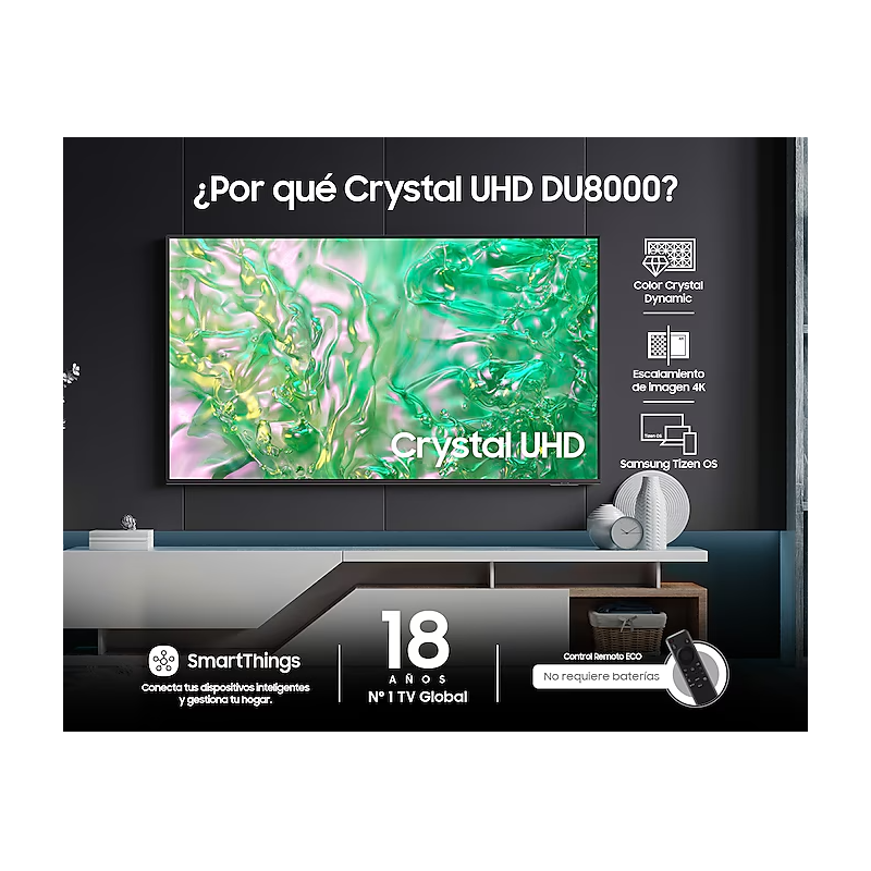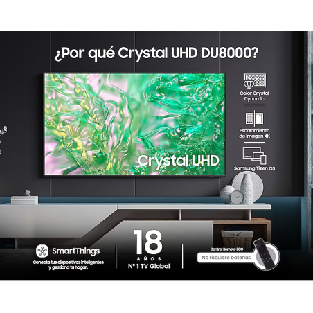 Samsung 55DU8000 es una televisión de 55 pulgadas dentro de la gama UHD de Samsung, diseñada para ofrecer una experiencia visual de calidad superior. Con resolución 4K y tecnología HDR, la TV mejora tanto el contraste como los colores para una imagen más rica y detallada. Además, el modelo está equipado con el sistema operativo Tizen, que permite un acceso rápido a diversas aplicaciones y servicios de streaming. Su diseño moderno y elegante, junto con opciones de conectividad avanzadas, la convierte en una opción ideal para quienes buscan un televisor de gran tamaño con un rendimiento impresionante.